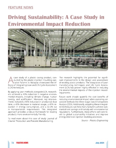 A cialist Paramit in Malaysia showcased the ef- of existing plastic products. The integration of Lean
