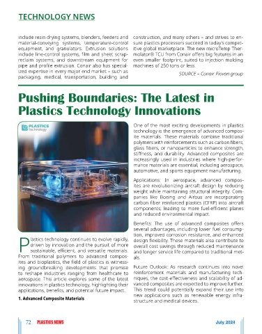 innovations in plastics technology, highlighting their vanced composites are expected to improve further.