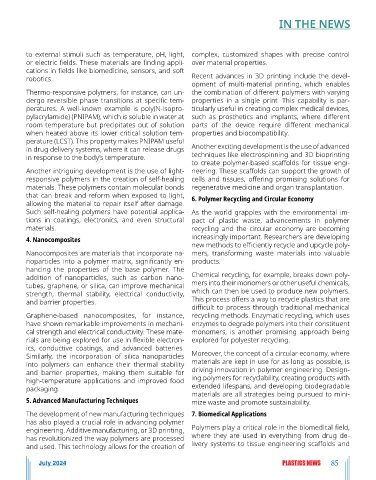 tions in coatings, electronics, and even structural pact of plastic waste, advancements in polymer