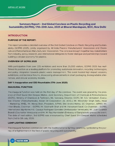 ability (GCPRS 2025), jointly organized by All India Plastics Manufacturers’ Association and Chemi-