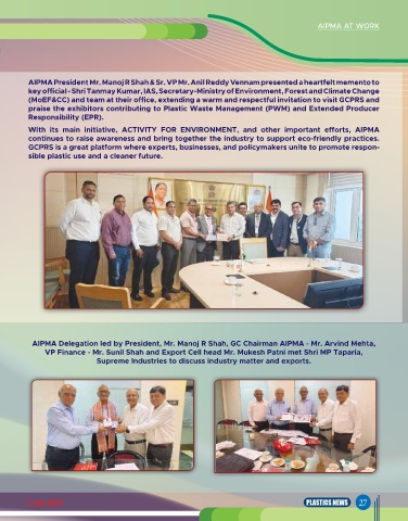 AIPMA Delegation led by President, Mr. Manoj R Shah, GC Chairman AIPMA - Mr. Arvind Mehta,