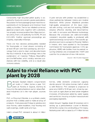 safety authorities. Erema has initiated numerous rial with sorting, cold and hot washing, EREMA