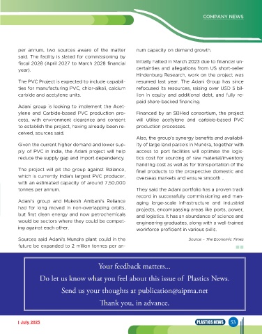The PVC Project is expected to include capabili- resumed last year. The Adani Group has since