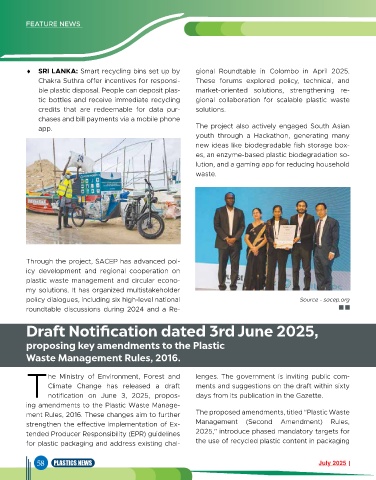 ♦ SRI LANKA: Smart recycling bins set up by gional Roundtable in Colombo in April 2025.