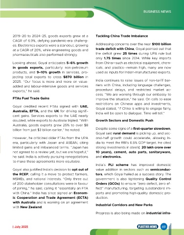 at a CAGR of 20%, while engineering goods and trade deficit with China, Goyal pointed out that