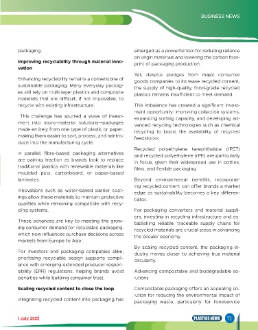 ment into mono-material solutions—packages vanced recycling technologies such as chemical