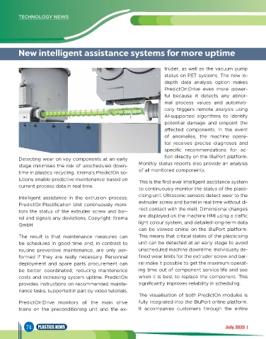 time in plastics recycling. Erema’s PredictOn so- of all monitored components.