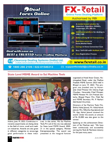 Indore, June 19, 2023. Continuous in- tries. In this series, M/s Sai Machine