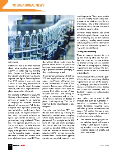 ing by 2035. Japan has relatively strict While PET bottles can easily incorpo- coloured liquids such as colas and