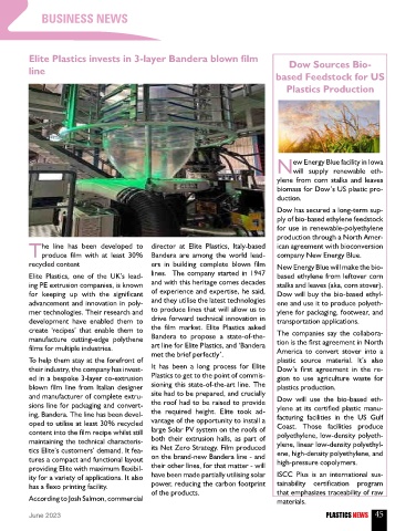 Elite Plastics, one of the UK’s lead- lines. The company started in 1947 based ethylene from leftover corn