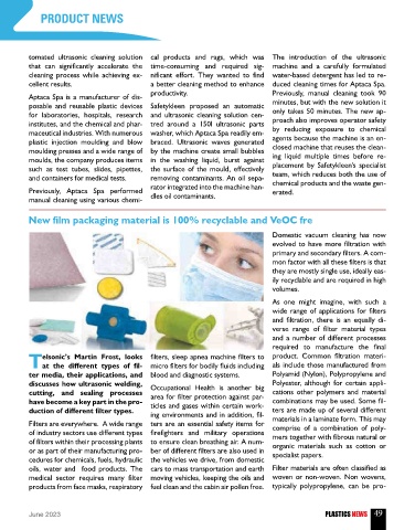 elsonic’s Martin Frost, looks filters, sleep apnea machine filters to product. Common filtration materi-