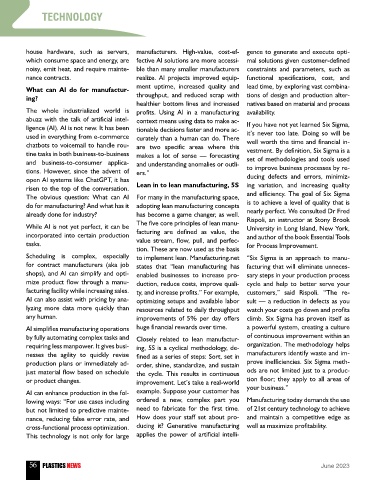 AI can also assist with pricing by ana- optimizing setups and available labor sult — a reduction in defects as you