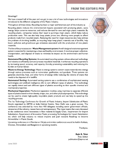 Substitution, Requirement of Innovative Plastic processing Technologies for Import Substitution