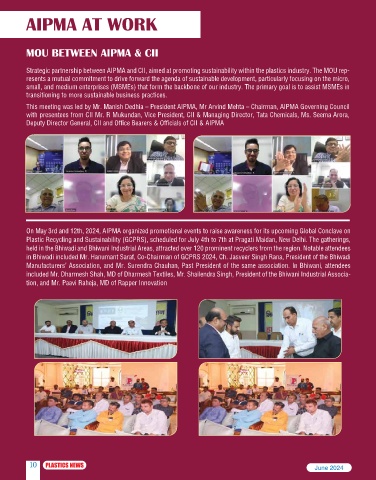 Strategic partnership between AIPMA and CII, aimed at promoting sustainability within the plastics industry. The MOU rep-
