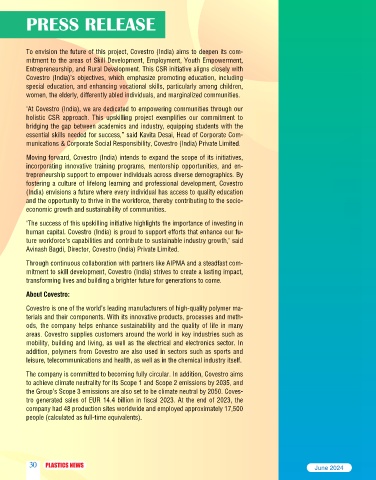 mitment to skill development, Covestro (India) strives to create a lasting impact,