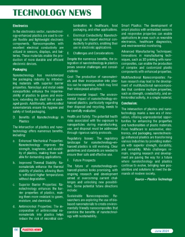 The intersection of plastics and nano- use, and disposal must be addressed From healthcare to automotive, elec-