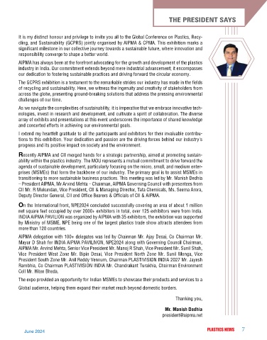 President South Zone Mr. Anil Reddy Vennum, Chairman PLASTIVISION INDIA 2027 Mr. Jayesh