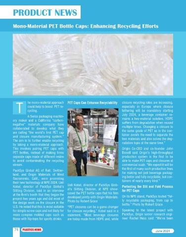 at the firm’s booth that they began the cased the PET bottle caps that his firm On its NPE stand, PackSys touted “ful-