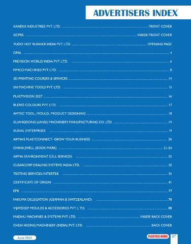 VIJAYDEEP MOULDS & ACCESSORIES PVT. L TD. ............................................................................................ 88