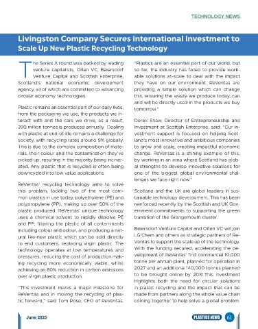 plastic produced. ReVentas’ unique technology ernment commitments to supporting the green