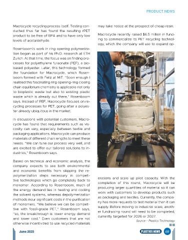 tive with fossil-grade PET,” Rosenboom says, supply. Before moving to industrial scale, anoth-