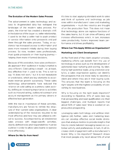 The advancement in sales technology and ac- roles within manufacturers’ sales and marketing