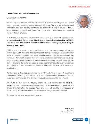 As we step into another chapter for the Indian plastics industry, we are thrilled