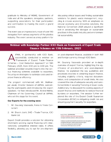 speakers. He then introduced Mr. Arvind Mehta, export finance and methods to reduce financial