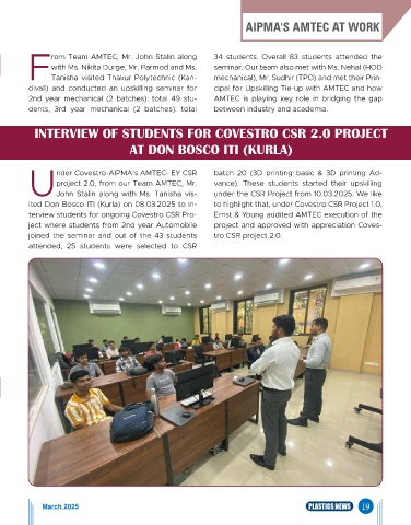 rom Team AMTEC, Mr. John Stalin along 34 students. Overall 83 students attended the
