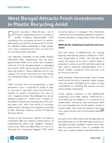 ture," Agarwal noted. West Bengal has set an Organising Committee, stated, “INDPLAS’25 is