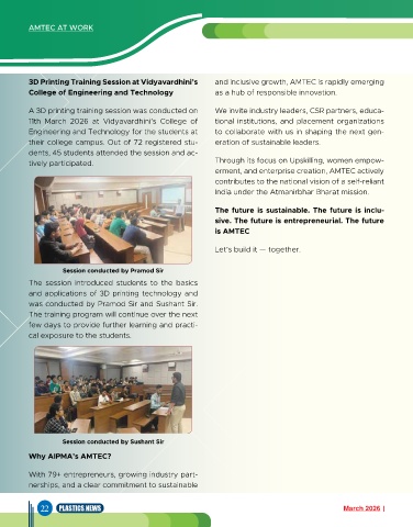3D Printing Training Session at Vidyavardhini’s and inclusive growth, AMTEC is rapidly emerging