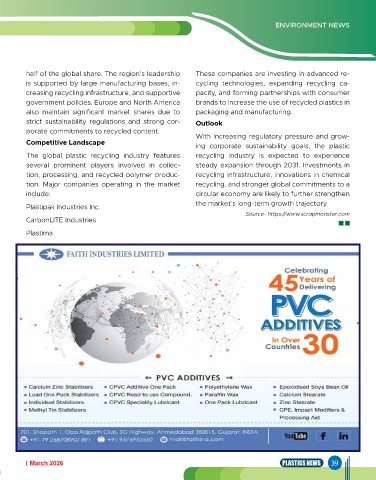 tion, processing, and recycled polymer produc- recycling infrastructure, innovations in chemical