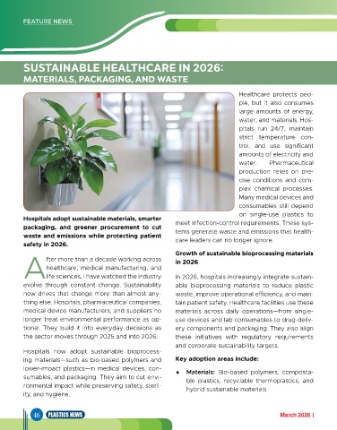 lower-impact plastics—in medical devices, con- ♦ Materials: Bio-based polymers, composta-