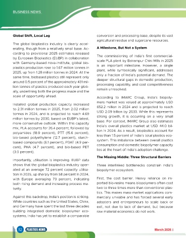 shows that the global bioplastics industry oper- Three interlinked bottlenecks constrain India’s
