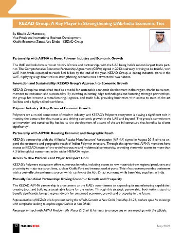 KEZAD's partnership with the All India Plastics Manufacturers' Association (AIPMA) signed in August 2019 aims to ex-