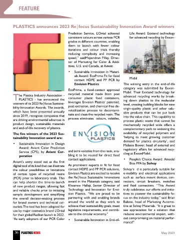 PLASTICS announces 2023 Re|focus Sustainability Innovation Award winners