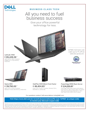 Visit https://www.dell.com/en-in/work/lp/associationsoffer (use “AIPMA” as unique code)