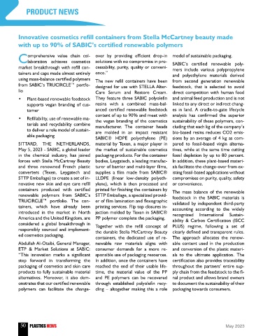 renewable polymers from SABIC’s STTP Emballage, a specialized provid- feedstock in the SABIC materials is