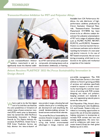 new transesterification inhibitor ity of PET and various other polyester duction in the quality and mechanical