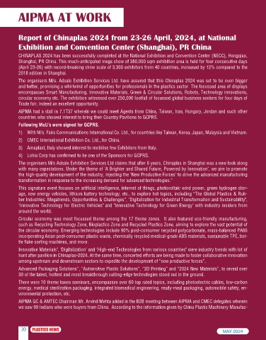 The organisers M/s. Adsale Exhibition Services Ltd. have assured that this Chinaplas 2024 was set to be even bigger