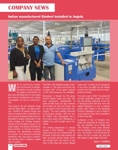 Indian manufactured Bindwel installed in Angola