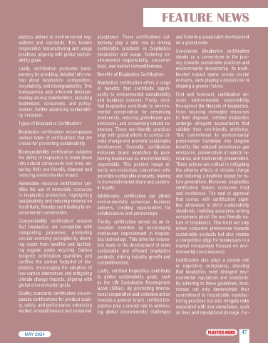 plastics adhere to environmental reg- acceptance. These certifications col- and fostering sustainable development