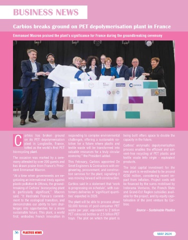 breaking of Carbios’ biorecycling plant is progressing on schedule’, with cus- Indorama Ventures, the French State