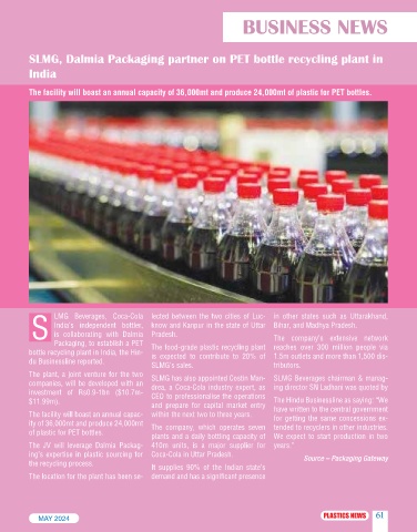 SLMG, Dalmia Packaging partner on PET bottle recycling plant in
