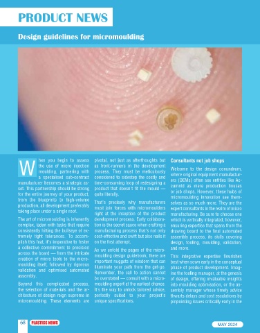 The art of micromoulding is inherently development process. Early collabora- which is vertically integrated, however,