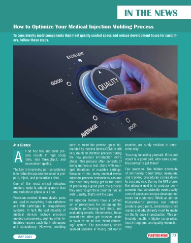 molded components, and few other in- procedures often get brushed aside timately results in higher scrap rates,