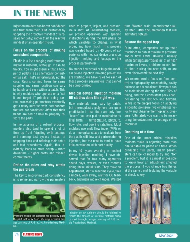 stepping back and refining their setup injection, but the results tend to have molders make is adjusting more than