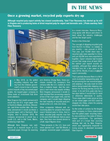 recycled paper mill in Fairmont, West export finished pulp to China. And in- paper company in China underscored