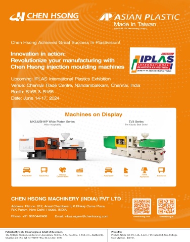 The All India Plastics Manufacturers’ Association, Plot No. A-52, Road No. 1, M.I.D.C., Andheri (E), Prudent Arts & Fab Pvt. Ltd., A-221, TTC Industrial Area, Mahape, MAY 2024 PLASTICS NEWS PB