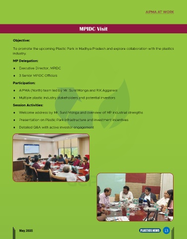 To promote the upcoming Plastic Park in Madhya Pradesh and explore collaboration with the plastics